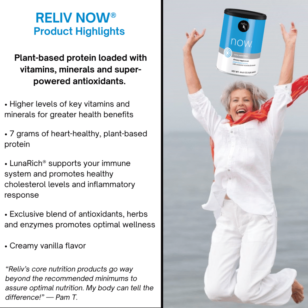You try to eat right, exercise regularly and maybe even take a multivitamin. Right now, you might feel pretty good. But why settle for pretty good when you can feel great? Reliv Now® with LunaRich® goes beyond a standard multivitamin pill, giving you more of everything your body needs. Reliv Now